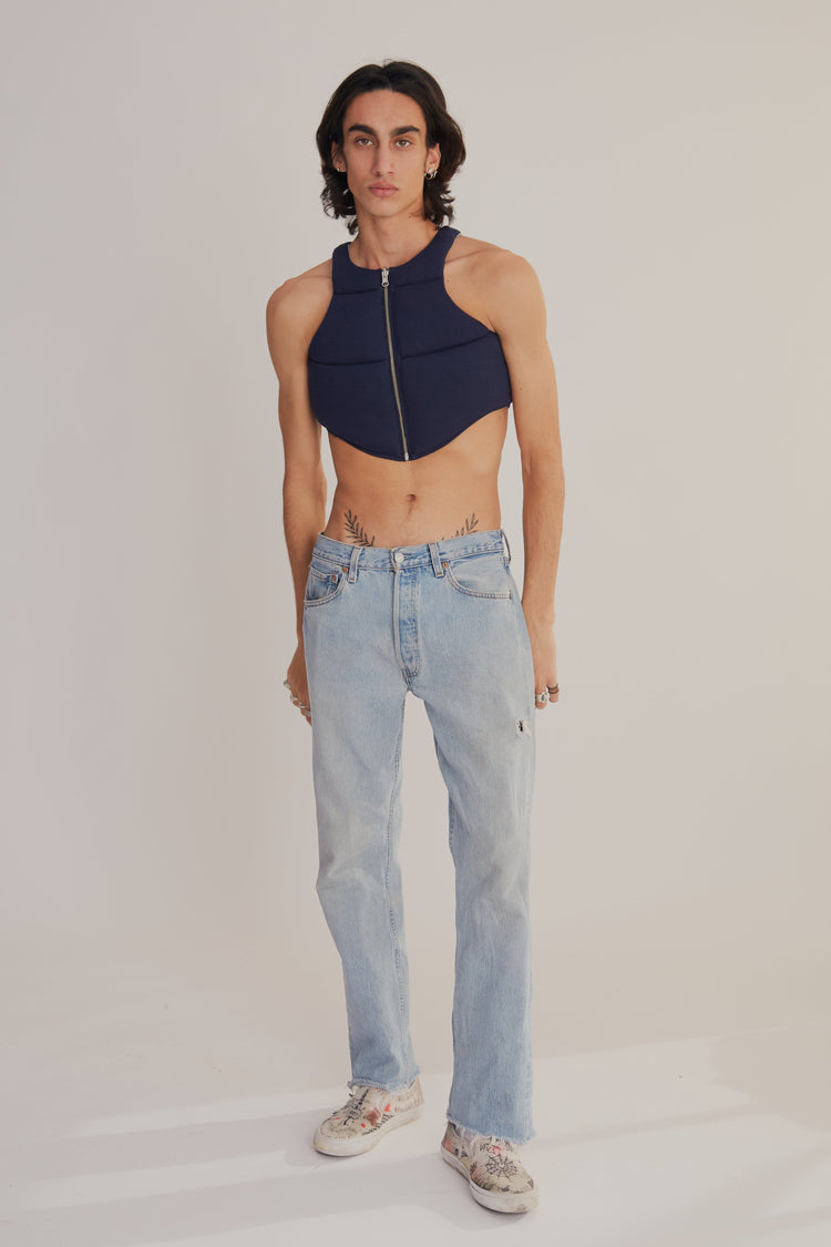 Description: This Unisex Reversible Puffer Crop Vest was made from high quality hand selected upcycled t-shirts; individually sourced to combine an edgy look while being as sustainable as possible. TEMPORARILY OUT OF STOCK.